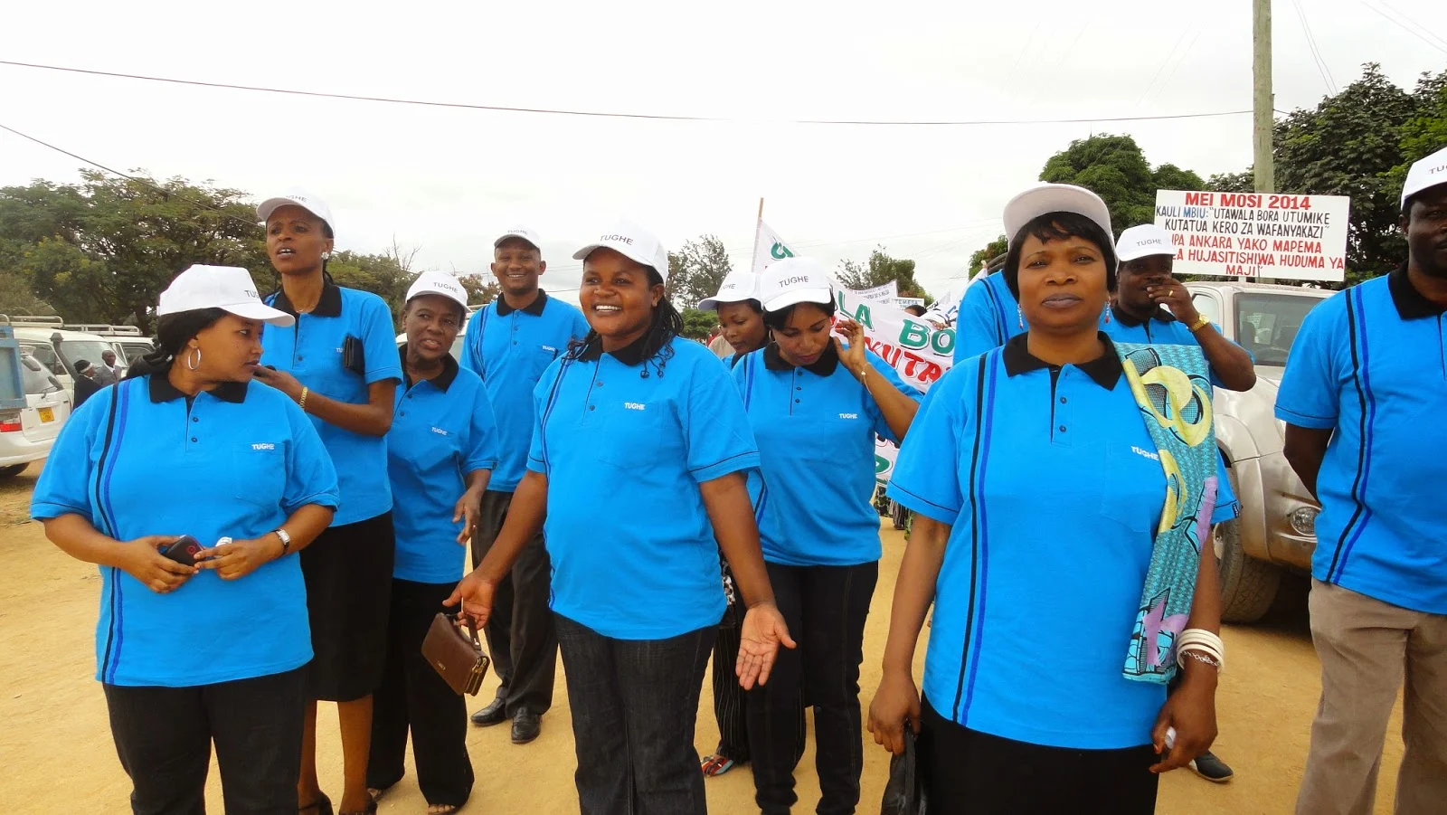 WAFANYAKAZI WA TUGHE BOMA MKOA WAKIJIANDAA KUANDAMANA KATIKA MAADHIMISHO YA MEI MOSI.
